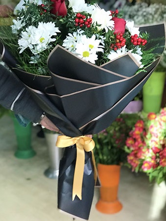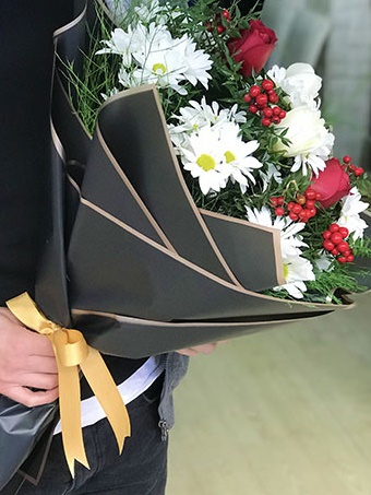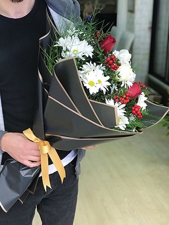 Papatyalar, Güller ve Kokinalar kullanılarak hazırlanmıştır.