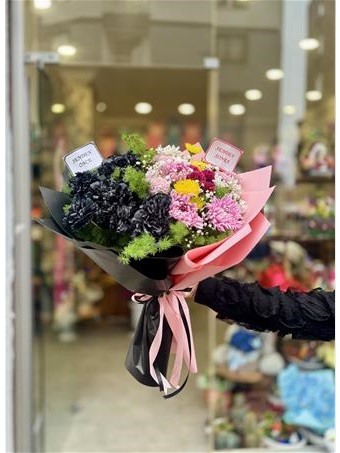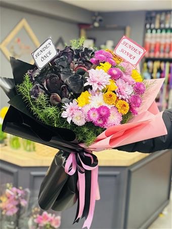 Yapay siyah güller ve renkli canlı çiçeklerle aşkınızı anlatan buketi sizler için özenle hazırladık.